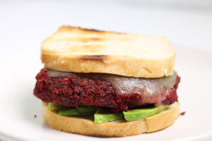 • Roasted Beet, Chèvre, Spinach Salad with Pistachios and Mint
